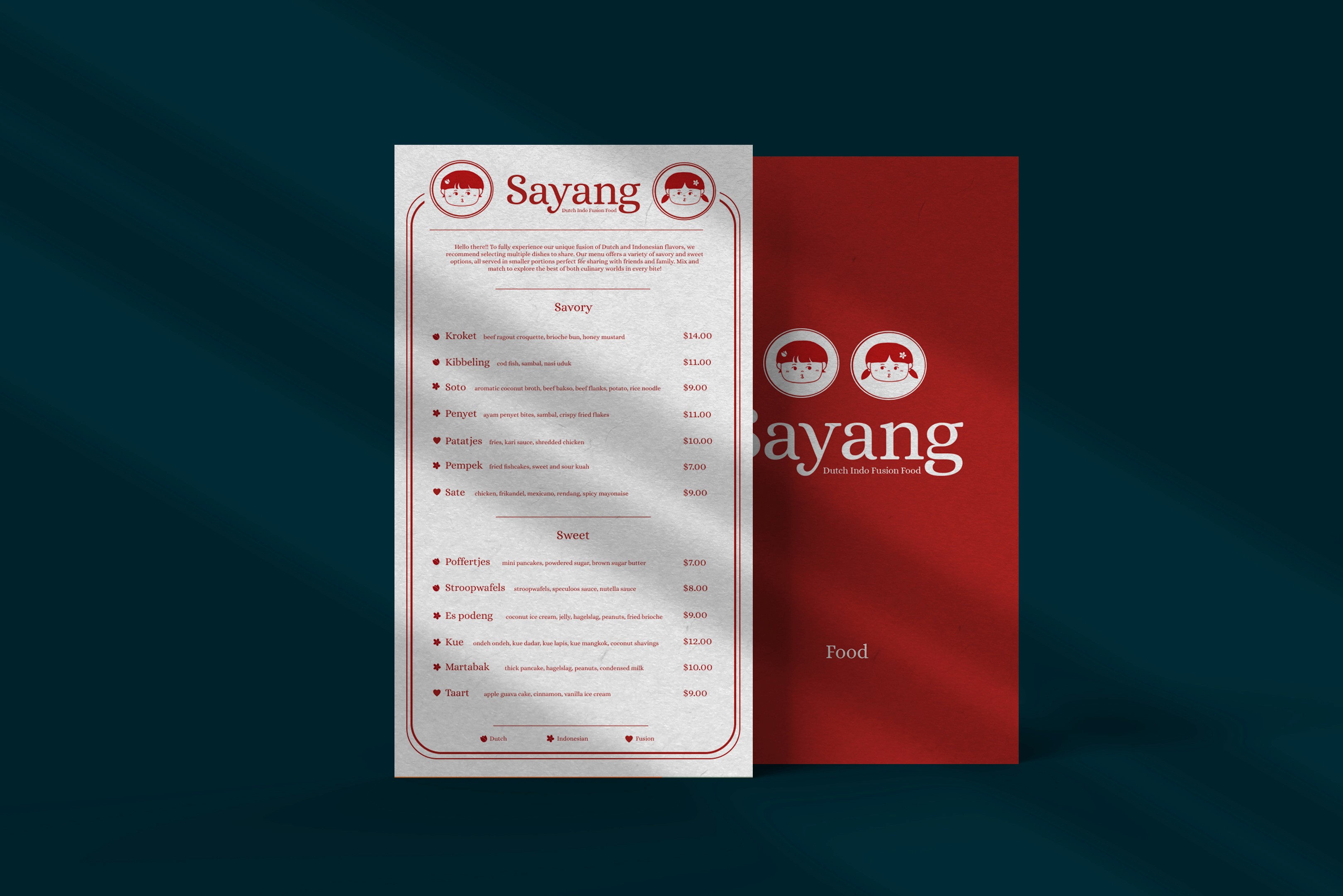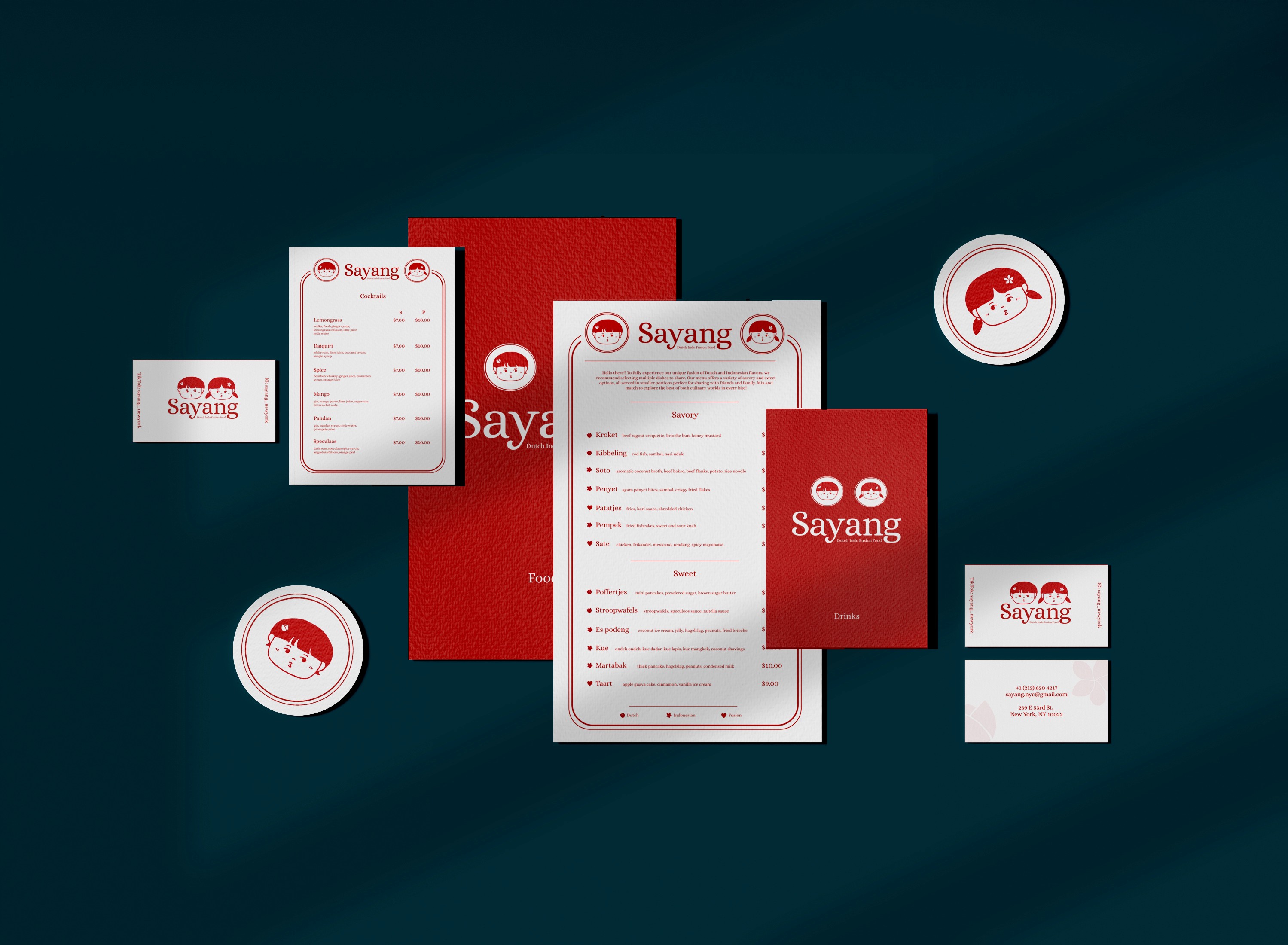 Sayang is a Indonesian and Dutch fusion restaurant that I cam up with for my Branding class.